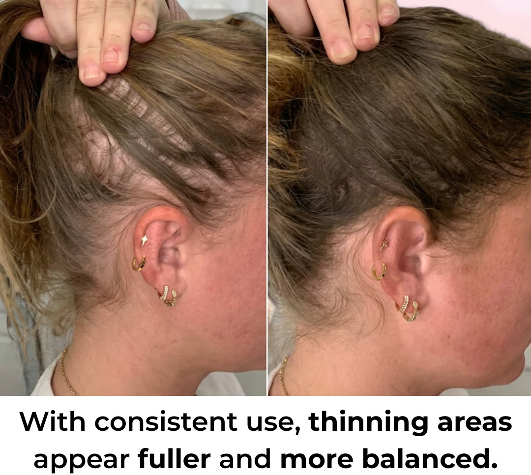 Over time, hair appears stronger and denser, helping thinning spots blend seamlessly with surrounding hair