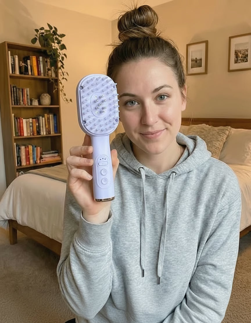 Regular scalp stimulation helps strengthen roots, promoting denser-looking hair and minimizing daily hair fall over time.